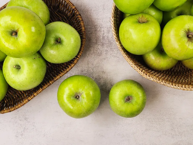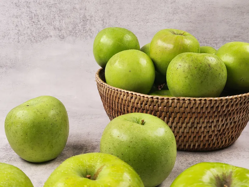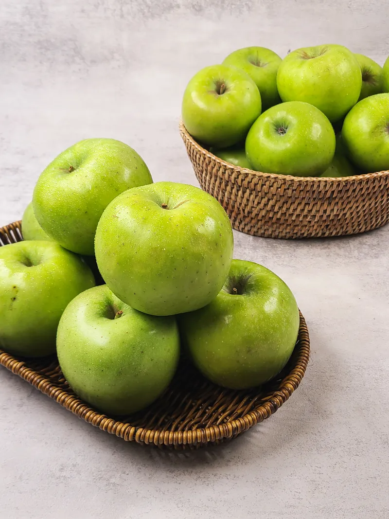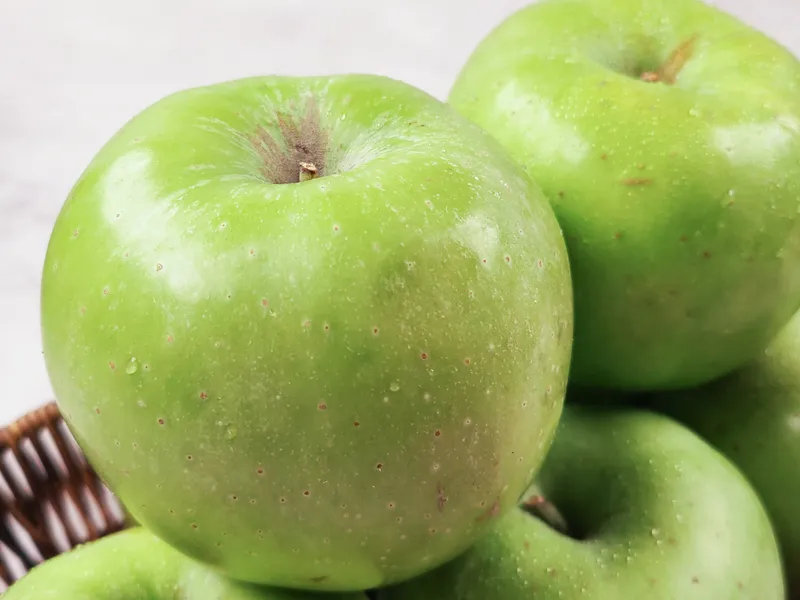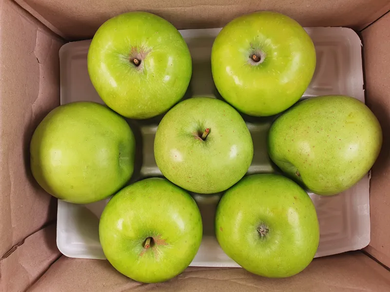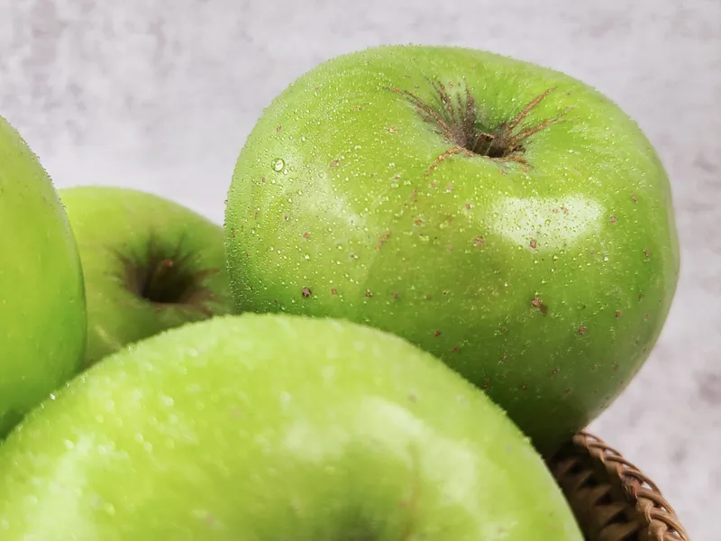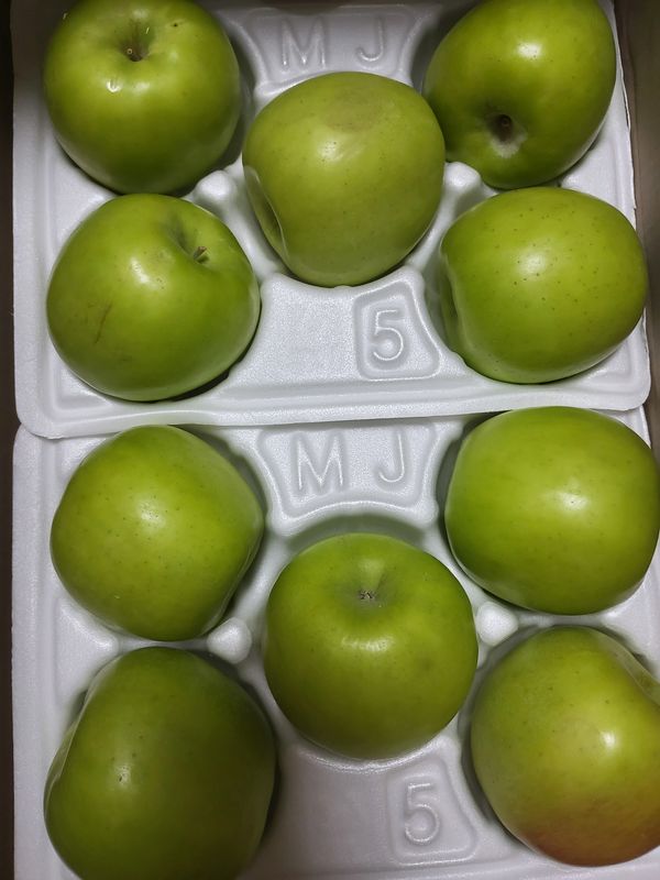 싱그러운 초록빛의 사과, 아오리 사과를 준비했어요. 과즙이 풍부해 한입 베어물면 새콤달콤한 풍미가 입안 가득 퍼진답니다. 또 아삭아삭한 식감으로 씹는 재미도 있죠.