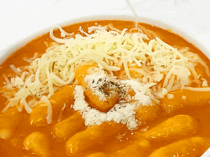 배송한지 하루뒤에 요리해서 먹었습니다 쫀득쫀득 찰진 떡속에 치즈랑 잘어울려 식감도 좋고 맛은 양념이 로제 떡볶이 맛이 조금 나는듯하였습니다 맵거나 느끼하지 않아 풍부한 맛을 느끼며 먹었습니다 감사합니다