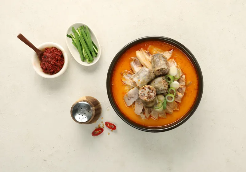 은은하게 얼큰하면서 깊고 진한 국물이 특징이에요. 자극적이지 않으면서도 든든한 맛을 즐길 수 있으며, 찹쌀순대와 푸짐한 건더기가 어우러져 한 그릇에서 식감과 만족감을 모두 느낄 수 있어요.