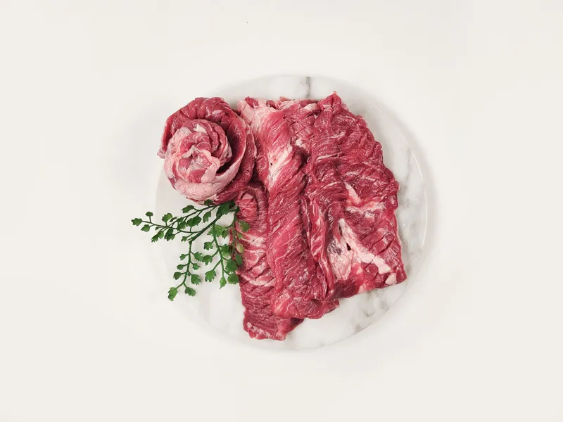 돼지의 갈비뼈 안쪽의 가슴뼈 끝에서 허리 뼈까지 갈비뼈 윗면을 가로지르는 얇고 평평한 횡격막근을 분리한 살이에요. 돼지 한마리당 600g도 안나오는 소량의 특수부위로, 짙은 육색으로 육즙이 풍부하며, 쫄깃하게 씹는 맛이 일품이에요. 씹으면 씹을수록 느껴지는 돼지고기 육향은 기분까지 좋아진답니다. 먹기 좋게 손질하여 보내드리니, 갈매기살의 풍성한 육결과 육즙을 만끽해 보세요.