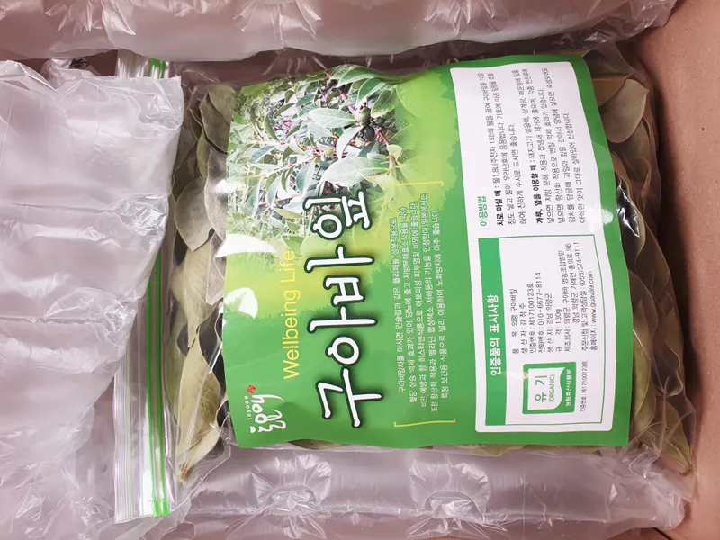 경북 의령에서 직접 재배한 유기농 구아바 잎을 보내드립니다. 꼼꼼하게 엄선하였으니 안심하고 드실 수 있습니다.
