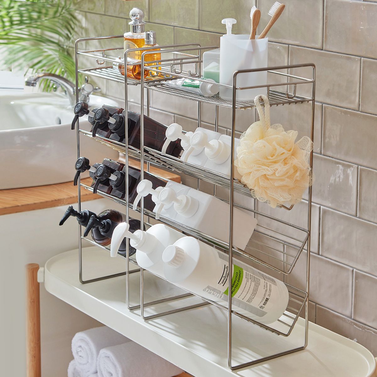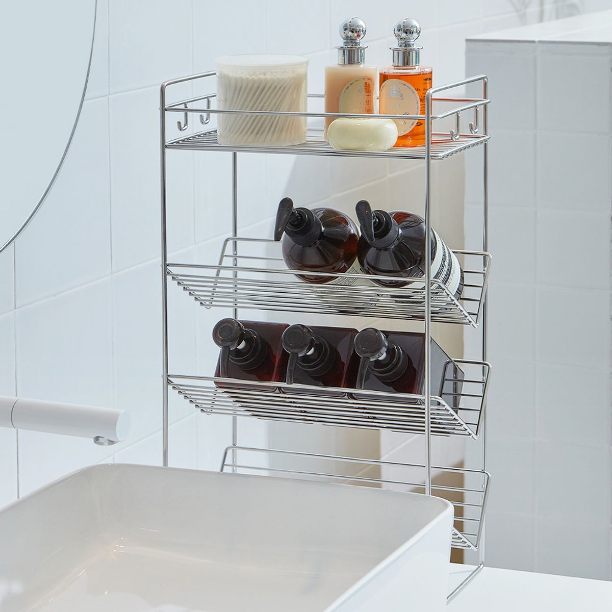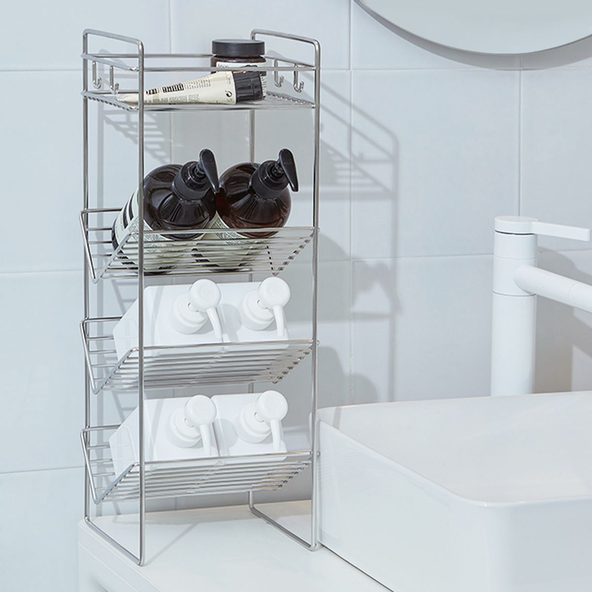 무디타 304 스텐 4단 샴푸랙 욕실 선반 L/ 무타공 다용도 수납 정리대