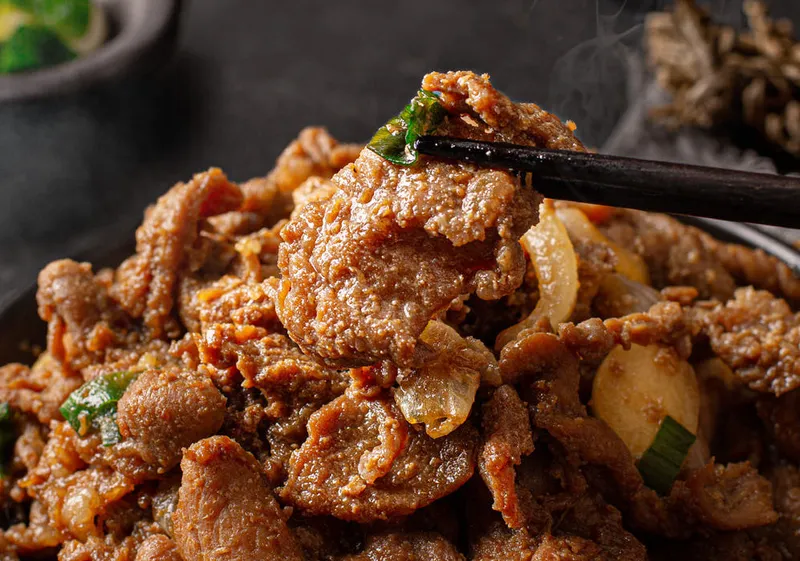 1970년대부터 이어져 온 마포 원조의 비법 양념으로 맛을 냈어요. 깊이 있는 간장 베이스에 은은한 단맛이 어우러져 자꾸만 생각나는 맛이랍니다. 양파와 마늘의 단맛이 육류의 풍미를 한층 더 살려주어 조화로운 맛을 완성했어요.
