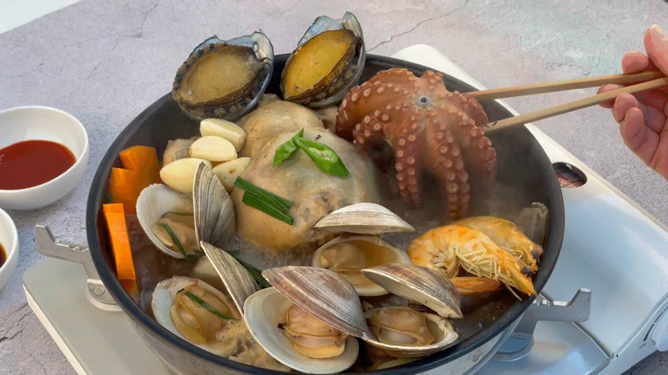 TIP. 해신탕을 맛있게 드신 후 깊게 우려 낸 해물과 닭의 육수에 마무리로 죽이나 칼국수를 넣어 드시면 더욱 맛있게 드실 수 있습니다.