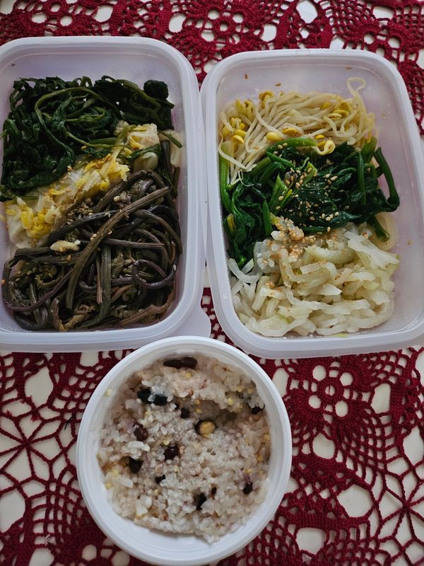 맛있게 잘 먹었어요! 오곡밥은 좀 진편이긴했지만 깔끔하게 담아져온 나물은간도맞아 맛있게 먹었어요~~