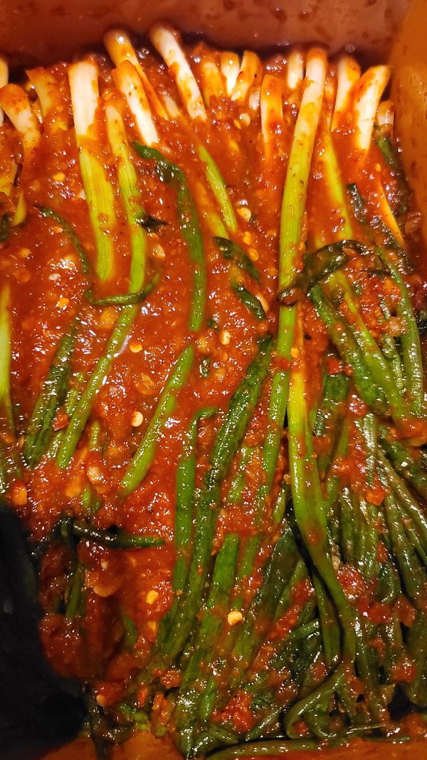 양념이 적당히 입맛나는 맛있는 파김치네요 익지 않아도 너무 맛있습니다
