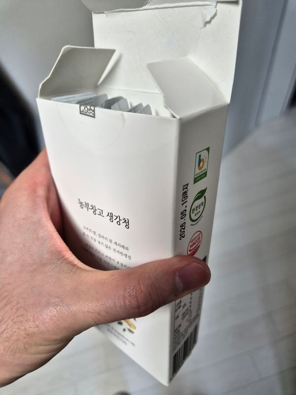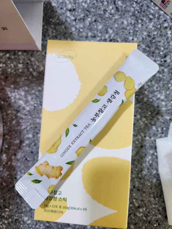 사진을 못 찍었는데 두번째 주문한거에요. 생강향도 진하고 맛있어요. 대추차나 식혜에 타 먹음 환상의 조합이네요. 또 주문 할거에요