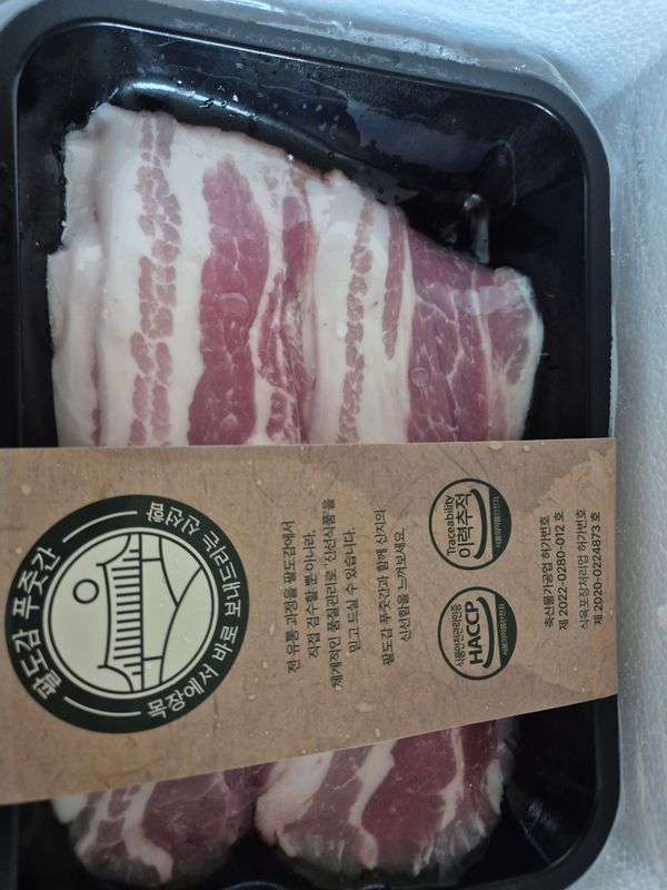 대패라고 하기에는 두께감이 있고 생삼겹이라하기에는 얇은데 정말 딱 좋은 두께감이라서 금방 익기도 하고 가볍게 먹기에도 너무 좋아요. 만족도가 높아서 재구매헸어요. 냄새도 없고, 뼈가 좀 붙어 있는데 저는 괜찮은 정도였어요.