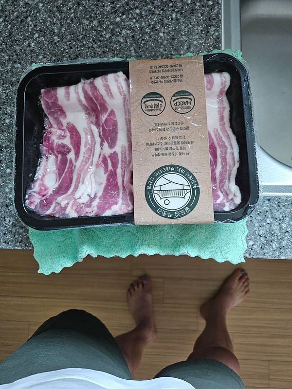 얇계삼겹살 상품평이좋아서 주문했어요 구워먹으면맛있을거 같아요