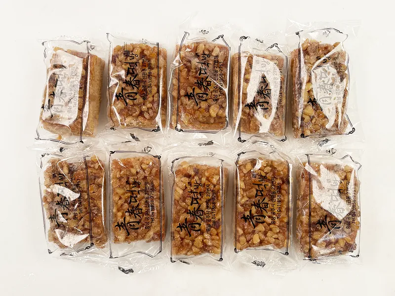 쉽게 찾아볼 수 없는 별미 중의 별미, 호두파이설기입니다. 달달한 호두파이의 맛과 향은 그대로, 하지만 소화에 부담되는 밀가루 대신 건강한 쌀 설기와 함께 즐겨보세요! 호두가 들어간 떡은 많지만, 호두파이의 풍미를 그대로 맛볼 수 있는 떡은 정말 흔하지 않죠. 2배 더 풍부한 맛과 향으로 즐겨보세요😋
