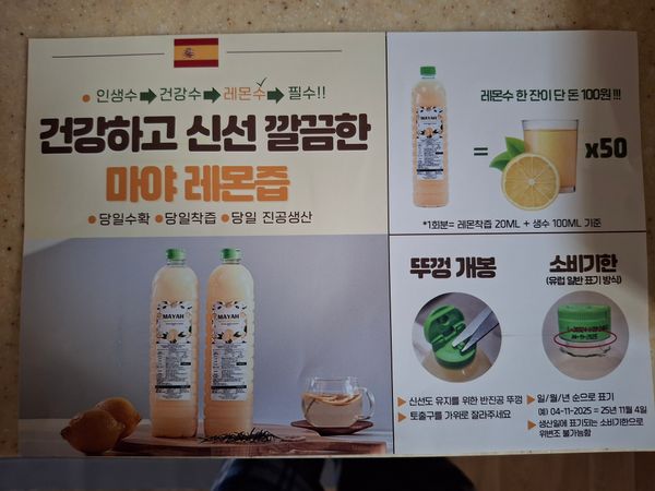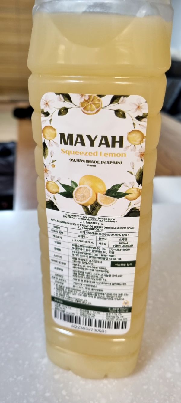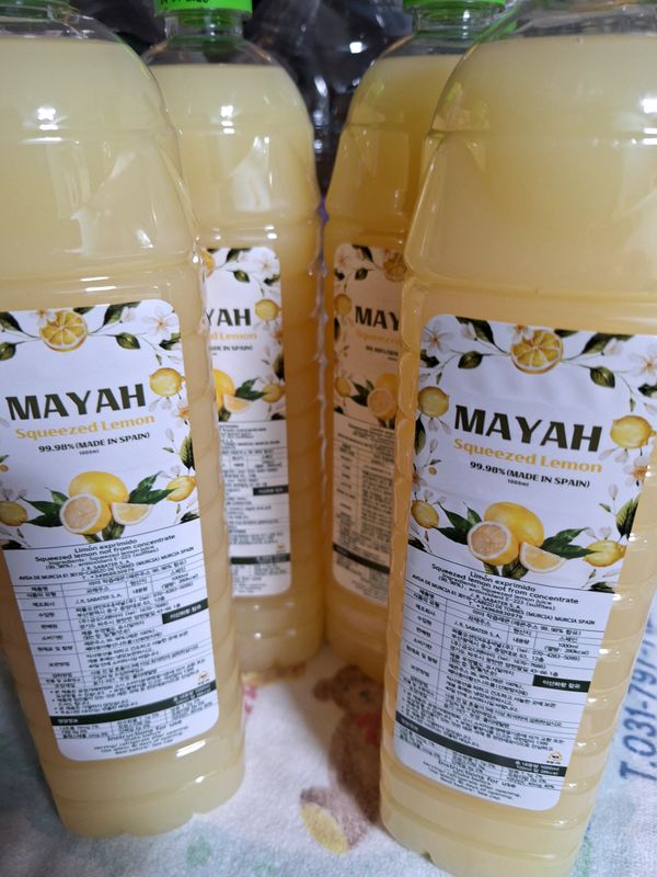 상콤한 레몬즙이에요. 탄산수나 사이다에 타서 마시면 맛있어요 너무 시지도 않아요 대용량이라 더 좋아요