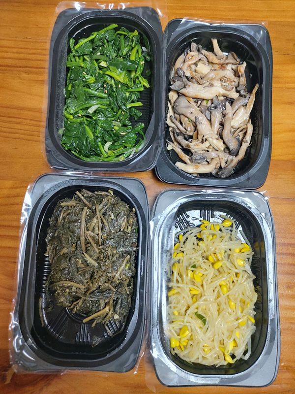 나물들이 다 깔끔하고 짜지 않아 좋아요. 계란 후라이 추가해 비빔밥으로 잘 먹었어요. 맛있어요.