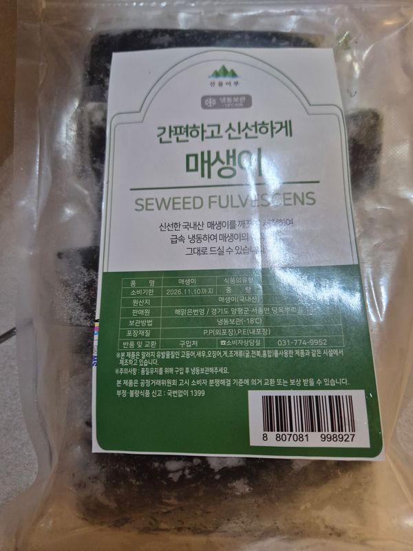 건조 메생이를 주문 하는데 급냉 메생이가 궁금해서 주문 해봤어요 맛은 똑같겠지요 포장 깔끔하고 메생이도 깔끔해요.