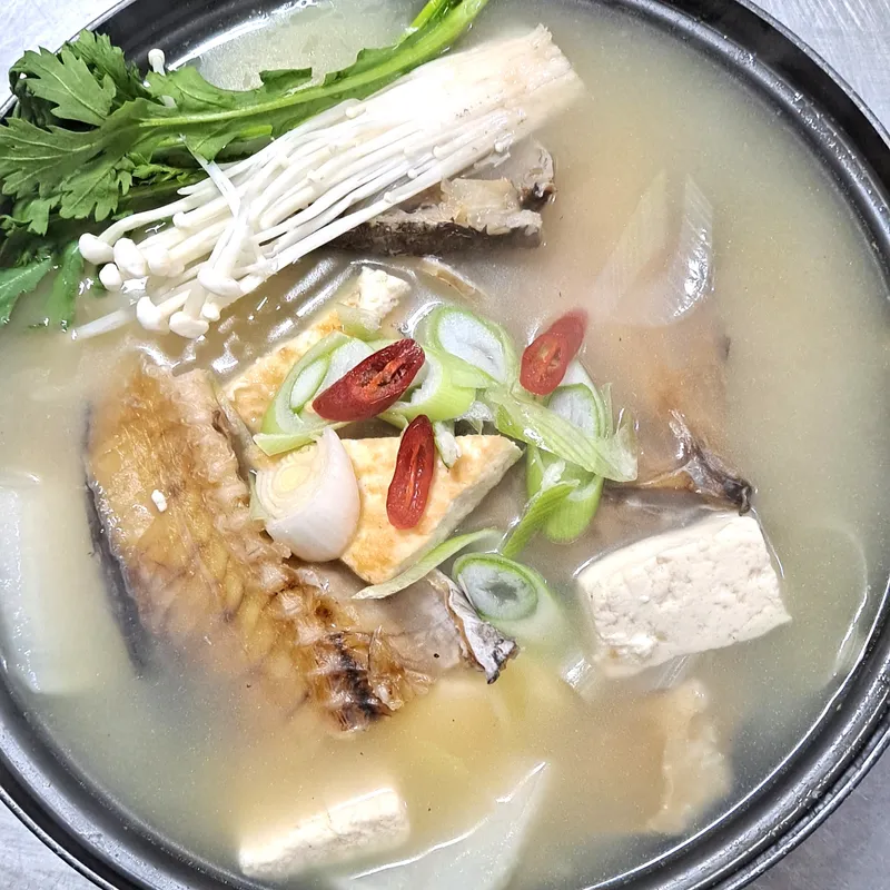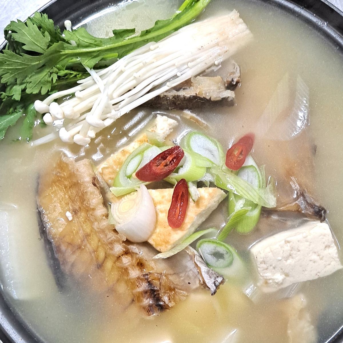 태안에서 잡은 싱싱한 우럭을 반건조 했습니다. 오래 끓일수록 더욱 깊어지는 국물 맛이 일품입니다. 우럭 특유의 진한 맛이 느껴짐과 동시에 한번 구운 두부를 넣어 고소한 풍미와 감칠맛이 환상적인 조화를 이뤄요.
