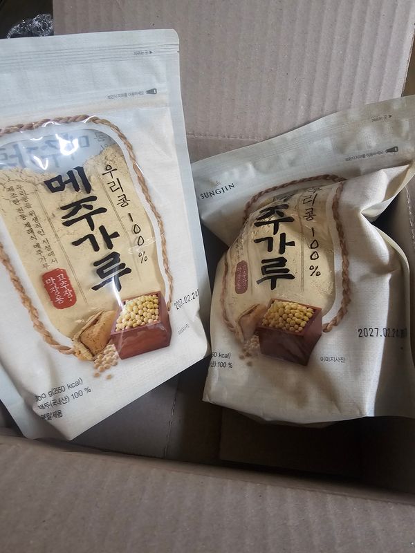 메주가루 넘 잘받았어요 퇴근후 급한마음에 후기도 남기지않고 묶은 된장을 늘구었어요~^^