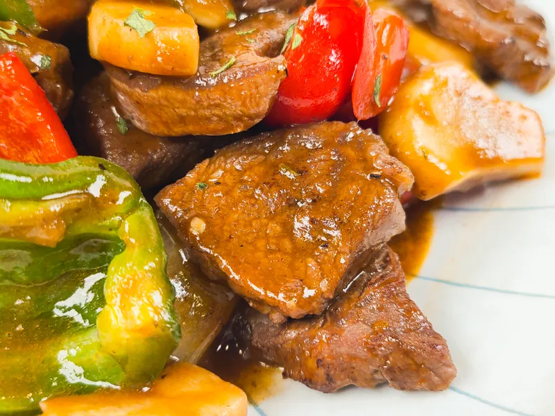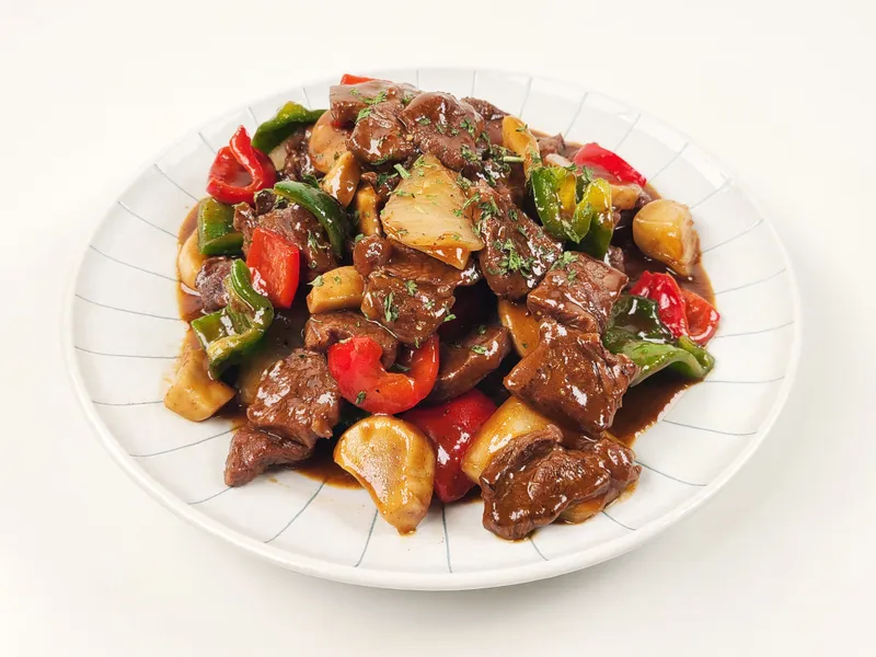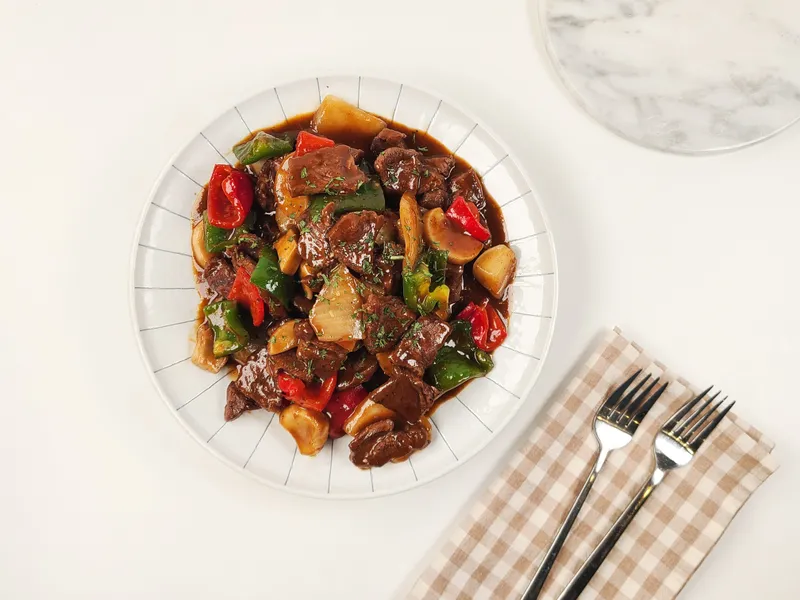 찹스테이크에 클래식한 풍미의 스테이크 소스가 추가되는 구성입니다.