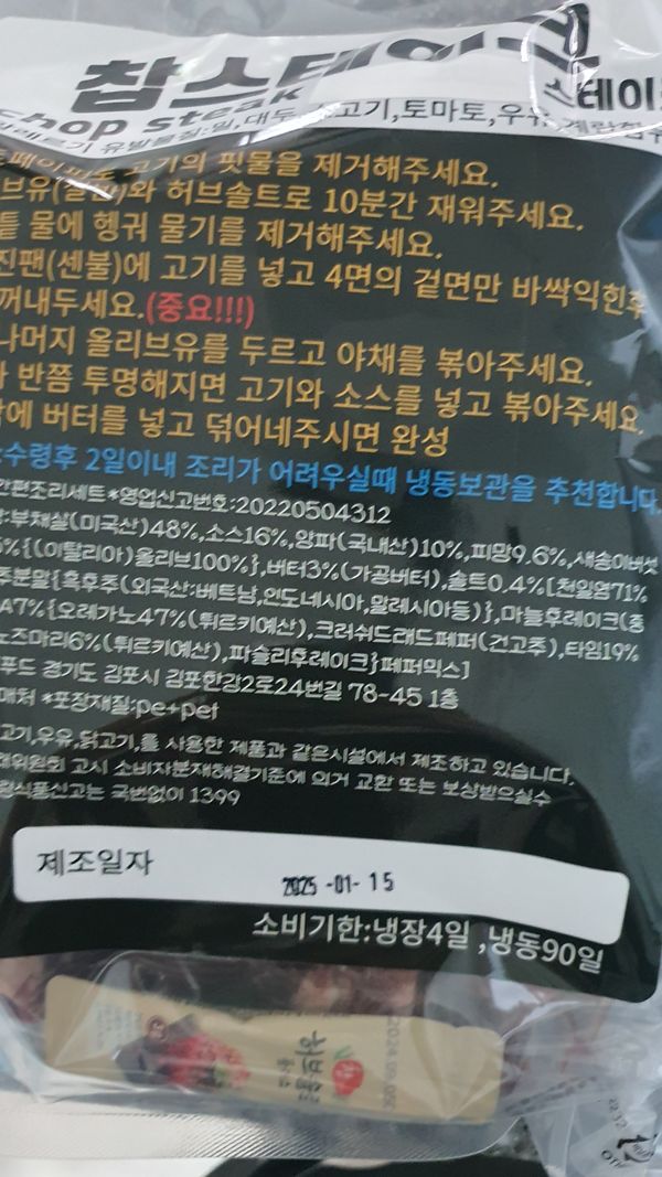옵션: 찹스테이크(스테이크 소스) 623g(2~3인분)*1팩