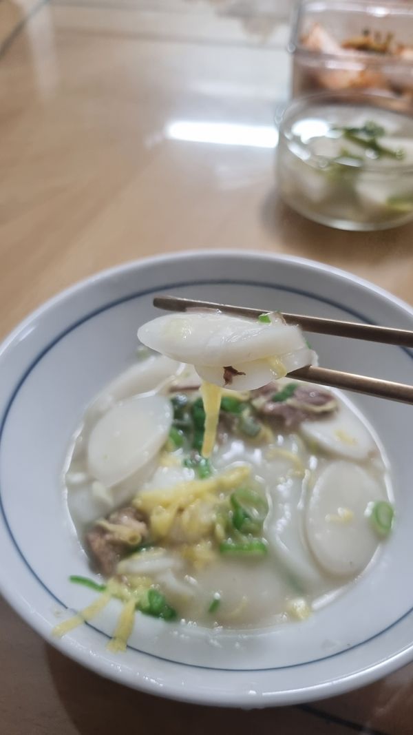 명인이 만든 한우사골 떡국 간편하게 잘 먹었어요 떡이 더 쫄깃한 식감이면 더 좋을것 같아요