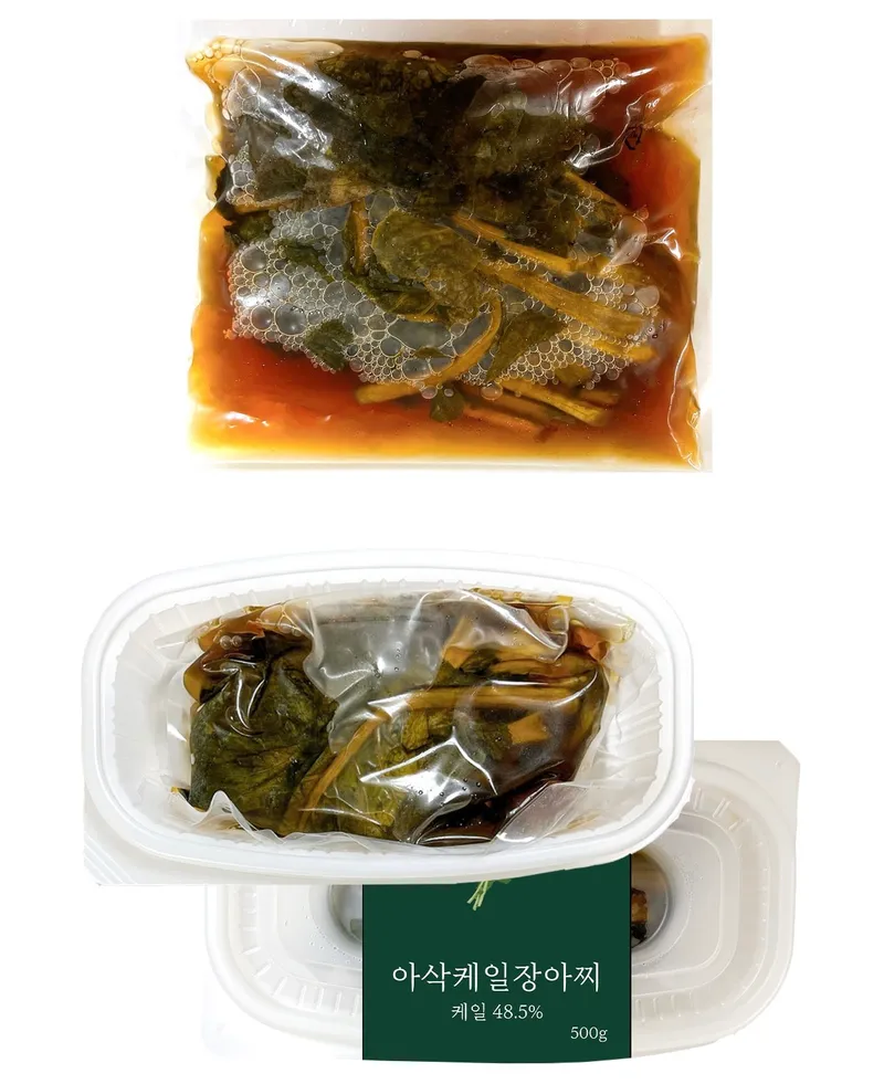 케일의 아삭한 식감을 살렸으며 짜지 않고 깔끔한 간장 소스에 절였어요. 새콤달콤! 짭조름! 감칠맛 가득 다채로운 풍미가 정말 좋아요~