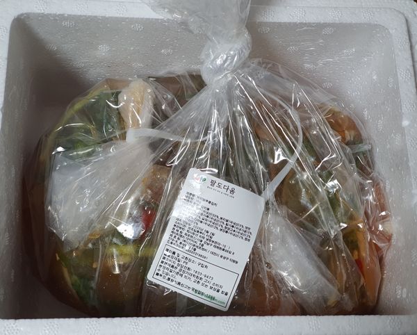 보리 열무 물김치를 주문했는데 보리가 보이지 않네요. 한참 먹다가 사진을 찍어서 열무도 얼마 없지만 맛은 깔끔합니다.