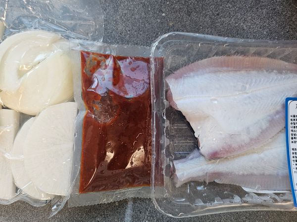 조림이 너무맛있어요 오자마자 바로 해먹었어요 가자미도 싱싱하고 야채도 싱싱해요 잘먹었어요