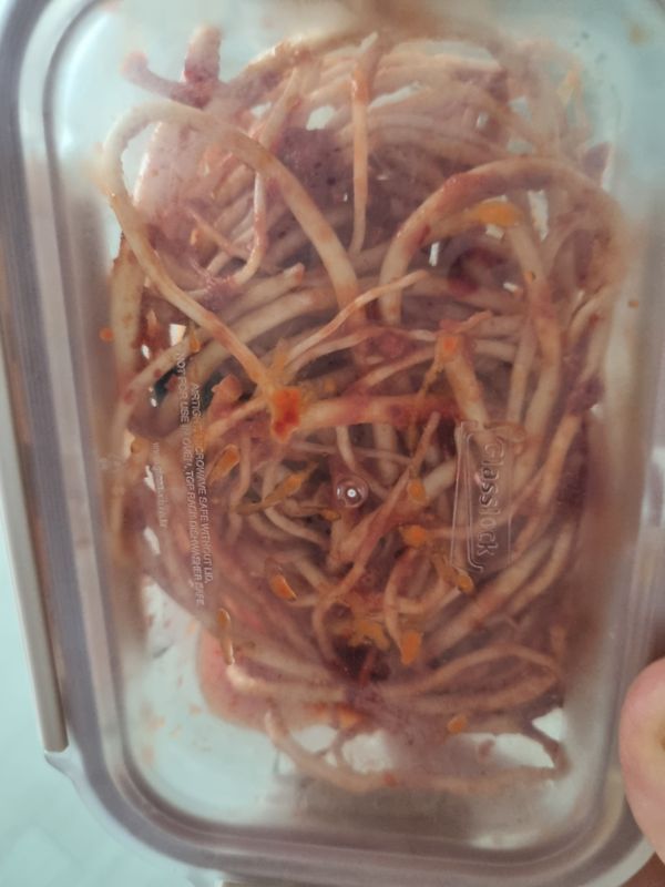 국물이 없어서 그런지 덜익어서 그런지 겉쉰내가 나네요~~한참익혀도 안없어지면 ㅠㅠ 일단 많이 익혀봐안겠어요 글구 많이 질기네오