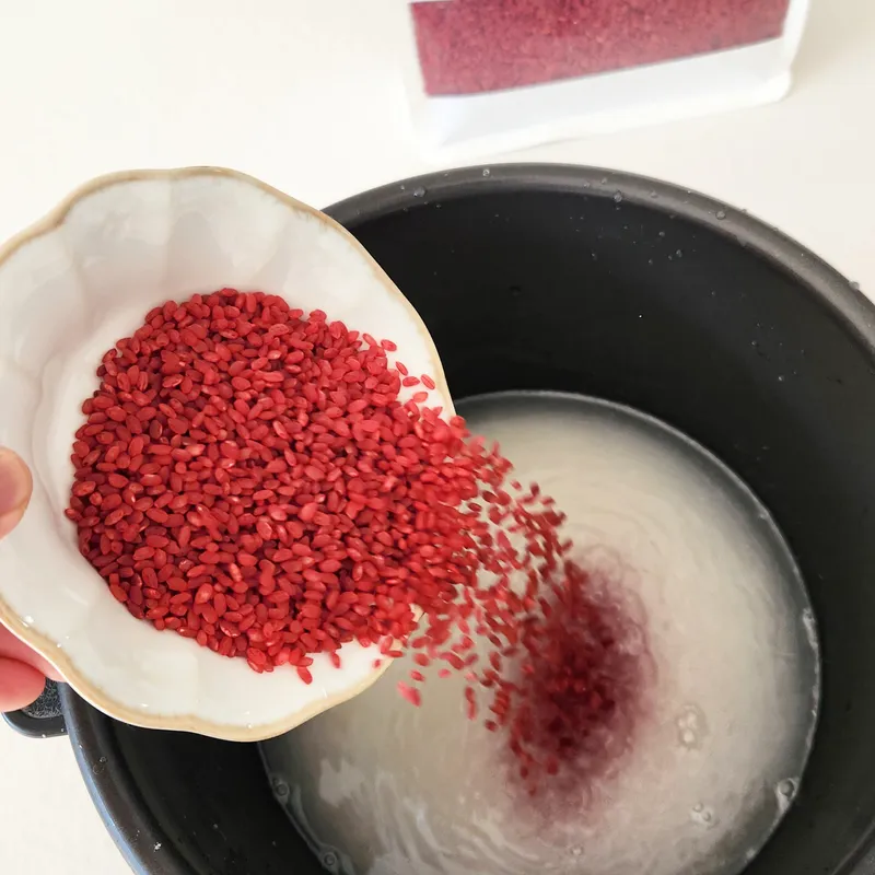 홍국쌀은 이미 세척된 쌀로 홍국성분이 물에 씻겨나갈 수 있으니 씻지 말고 바로 밥을 지어 드시면 됩니다.