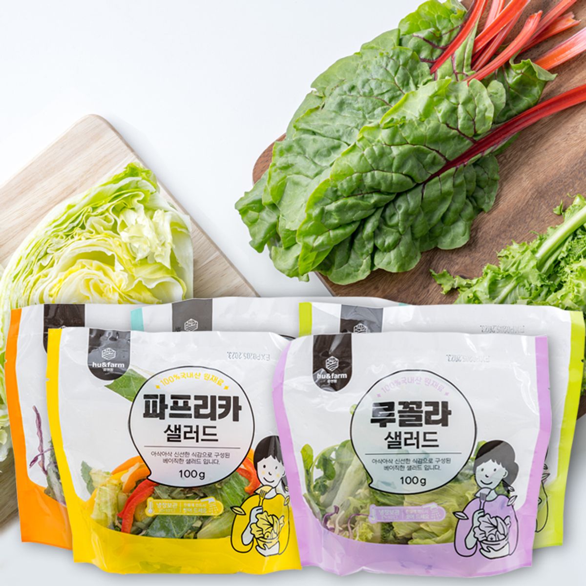 양상추부터 로메인, 치커리, 적근대까지. 그리고 5종 메인 채소 하나씩, 한 봉에 푸짐하게 담았습니다. 샐러드 채소로만 채운 용량이 무려 100g! 우리 땅에서 재배한 최고급 채소들로 하루 채소 섭취량 해결하세요🙌