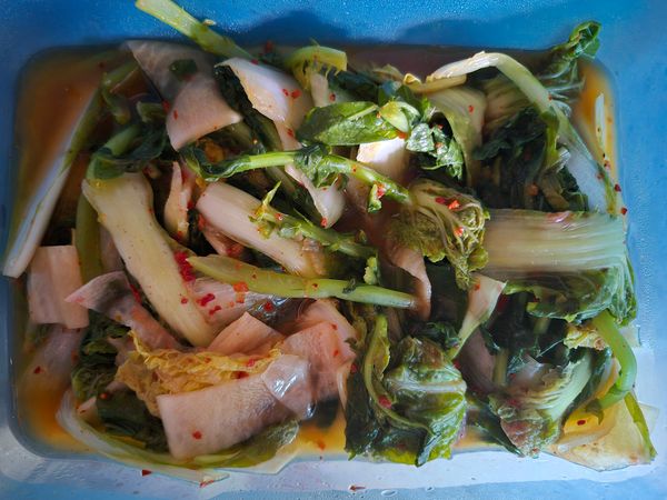 다른 열무김치에 비해 연하고 단배추랑 함께있어 더욱 맛있고 냉면에 넣어 먹으면 넘 좋아요