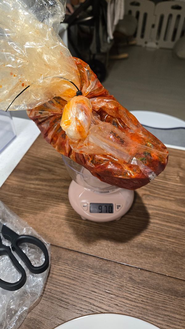 500그람 시켰을 때보다 양이 작아서 재봤더니 비닐 무게랑 양념이 있는데 1키로 안되네요~~ 맵기도 좀 달라졌고요... 양 차이가 큰 건 아니라서 놔두었는데 신경써주십시오.