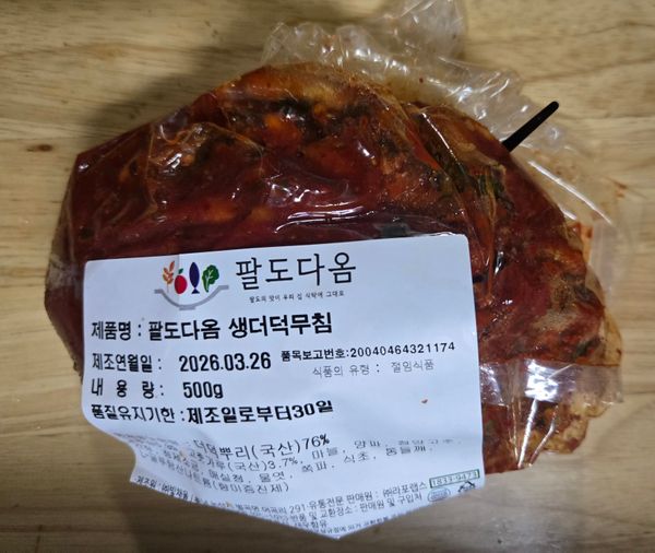 더덕이크기도크고 아삭하니식감이너무너무좋았어요 양념맛은살짝시큼하면서도 너무맛나네요. 배송도깔끔하고빨라요