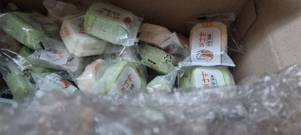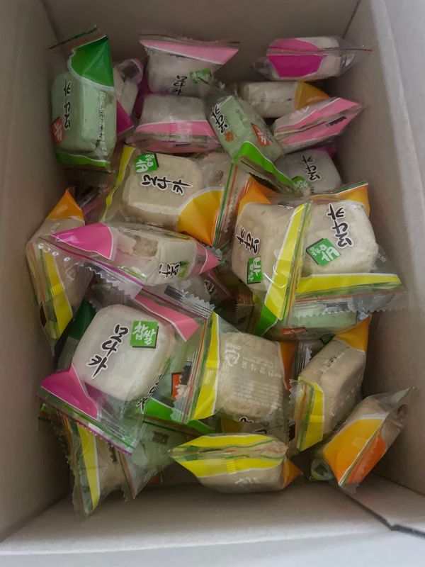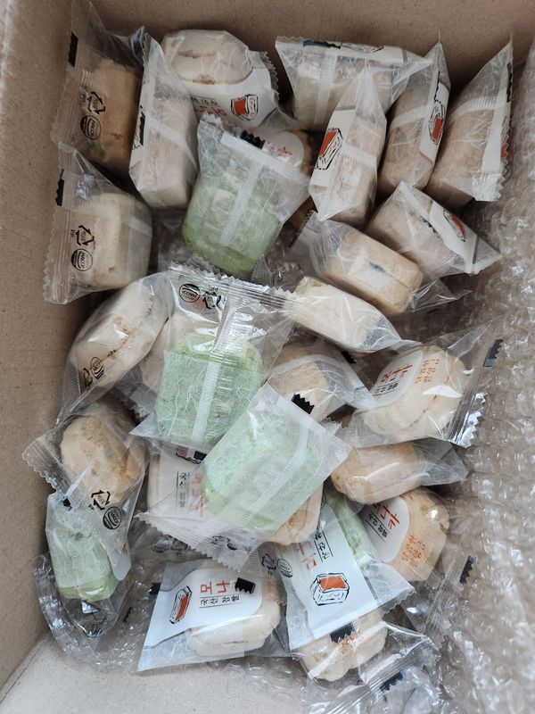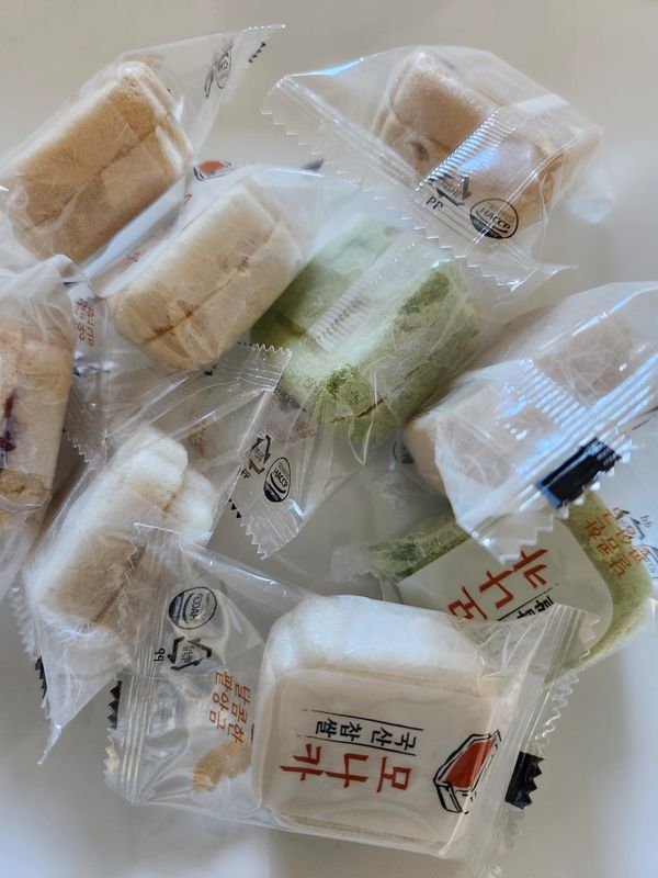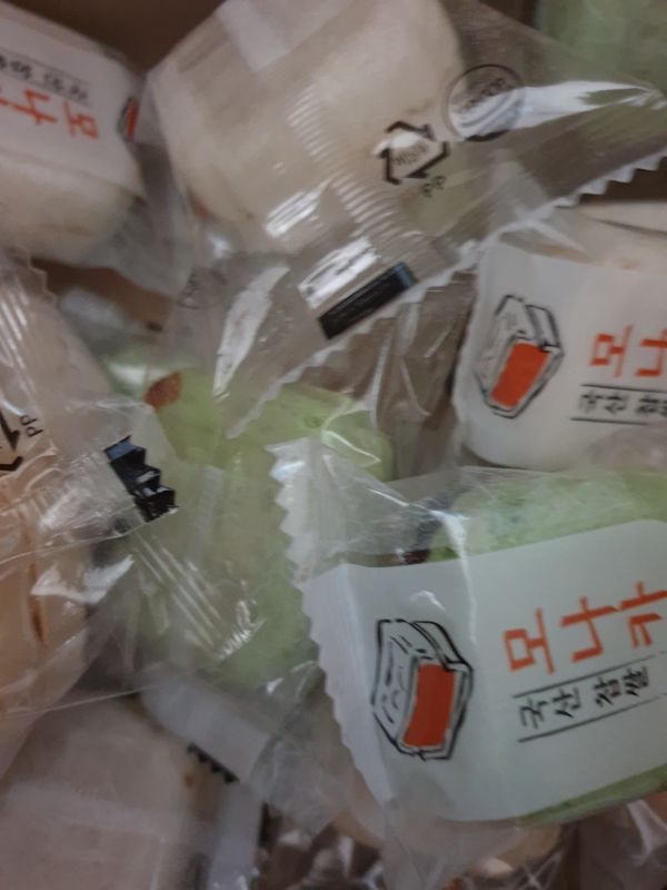 바삭이 아니고 질깃한 식감이고 안에 들어 있는 것도 별로 예요 모나카치고 저렴하다 생각했는데 누구 주기도 뭐한 별 맛없는 과자라 아쉽네요..