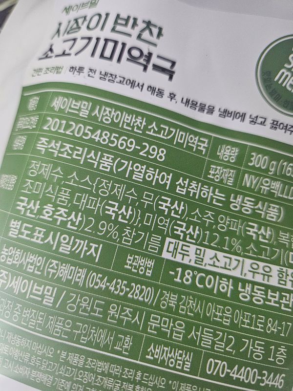 소분되어있어.1인분씩먹기편해요 깔끔한미역국맛이네요 짜지않고.김치하고먹으면단 담백합니다!^^