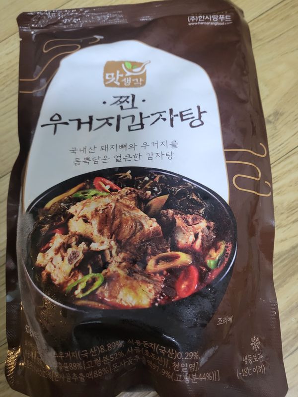 간편하게 냄비에 넣고  끓이기만 하면 완성이라 빨리 해먹기 좋아요. 국물도 진하고 맛있어요. 대파, 버섯 등 집에 있는 재료 추가해서 먹으면 더 맛납니다. 우거지가 많이 들어 있는데 우거지를 좋아해서 잘 먹었어요. 돼지뼈는 적당하게 들어있는데 양이 많지는 않아요. 맛은 괜찮아요.