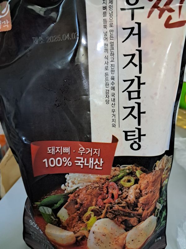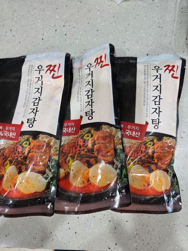 1팩에 등뼈 4조각정도 들어있고,우거지도 적당히있어...둘이먹기 좋았어요...맛도 괜찮아서 ...1팩은 지인나눔하고,남은1팩은 감자랑 버섯넣어서 먹어야겠습니다.잘먹겠습니다.
