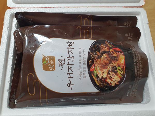 포장상태 좋습니다 한봉지 2인분이라는데 혼자 먹기 딱조아요 국물이나 우거지는 맛나요 등뼈는 잘 발라지지않고 고기가 뻑뻑한편입니다