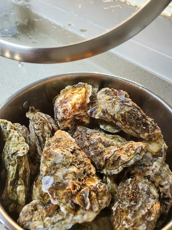 해수를 머금고 있어 짠맛이 강할 수 있습니다. 석화의 껍질을 깨끗하게 세척한 후 짠 맛이 조금 빠지도록 깨끗한 물에 30분~1시간 정도 담궈 주세요.
