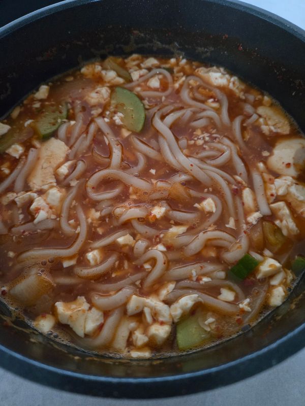 소스에 고춧가루 추가하고 양파 애호박 순두부 넣고 끓여먹었는데 생면이라 그런가 우동같기도 칼국수면 같기도면이 쫄깃쫄깃 너무 맛잇네요