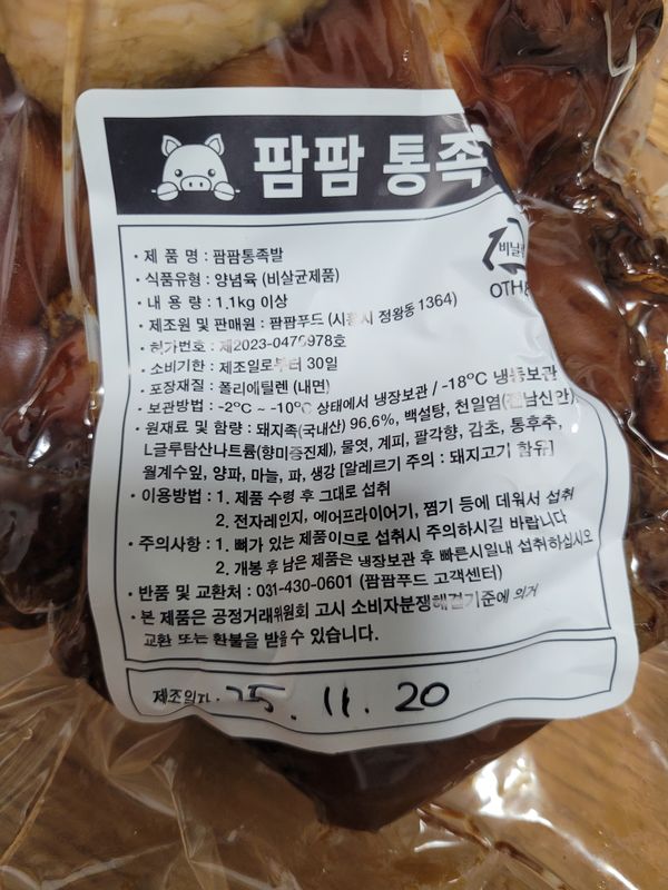 옵션: 통족발 1.1kg (3~4인분) / 새우젓 15g