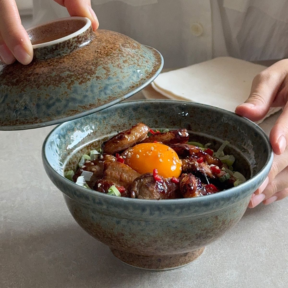 뚜껑이 포함된 텐동 그릇 MADE IN JAPAN