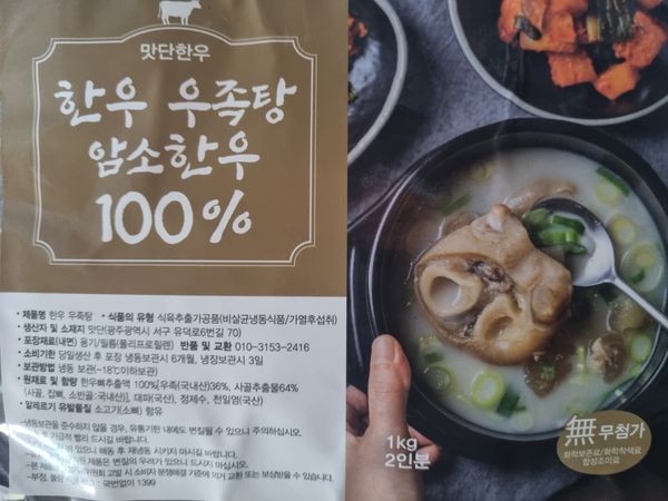우족 적당히 많이들었고요.두명은 충분히 먹을양입니다.맛도 나름 있었고 우족도 푹고아져 쫀득쫀득맛있었어요.가끔 국없을때 먹으면 좋을듯합니다.사진은 다먹고없어서 못찍었네요