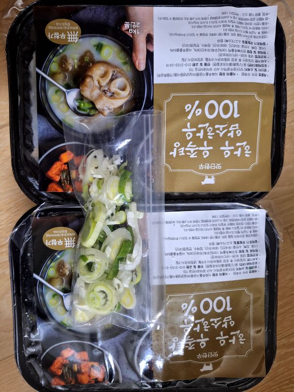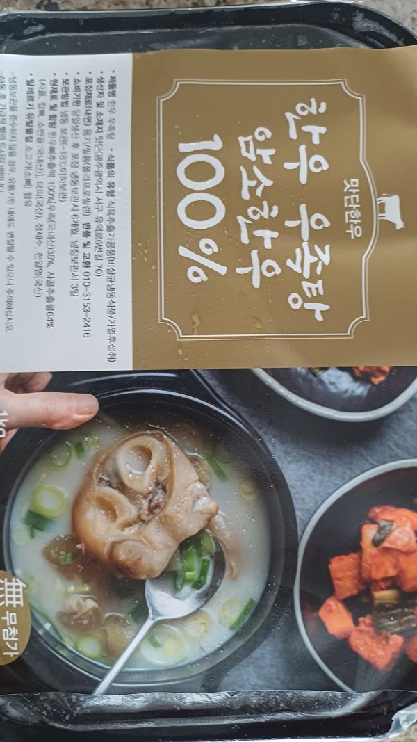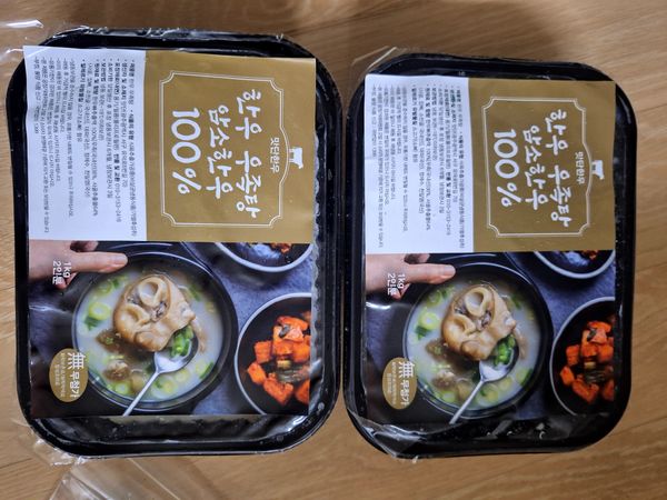 우족 적당히 많이들었고요.두명은 충분히 먹을양입니다.맛도 나름 있었고 우족도 푹고아져 쫀득쫀득맛있었어요.가끔 국없을때 먹으면 좋을듯합니다.사진은 다먹고없어서 못찍었네요