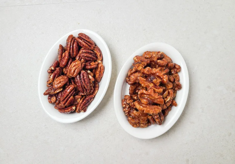 신선한 호두와 피칸만 선별해 달지 않게 조려 깊고 고소한 맛을 구현했습니다.