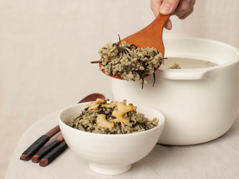 신선한 전복 내장 또한 최대한 많이 넣었지만, 쓴맛과 비린 맛은 싹 잡았어요. 재료의 황금비율로 전복톳밥을 꽉꽉 채웠답니다.