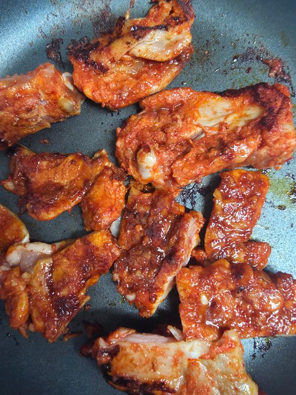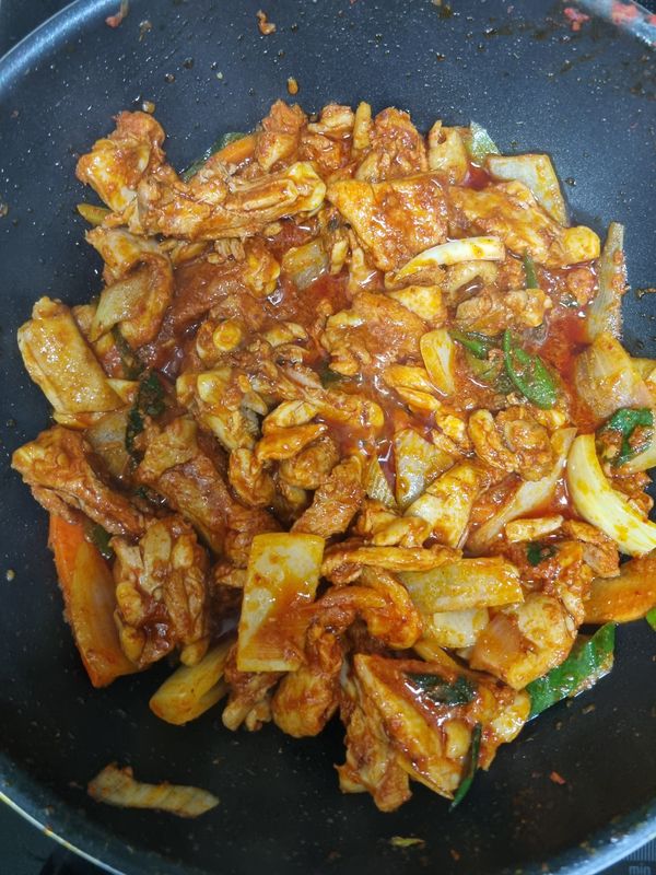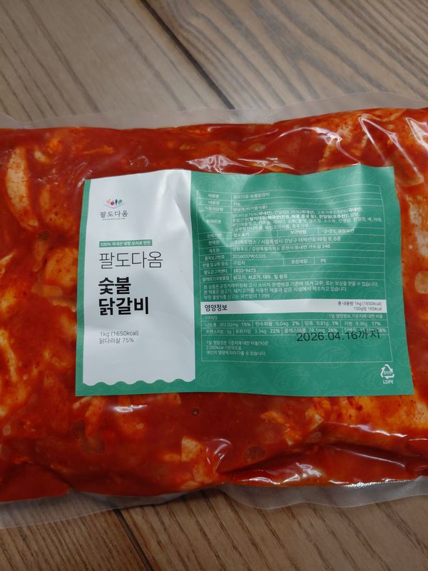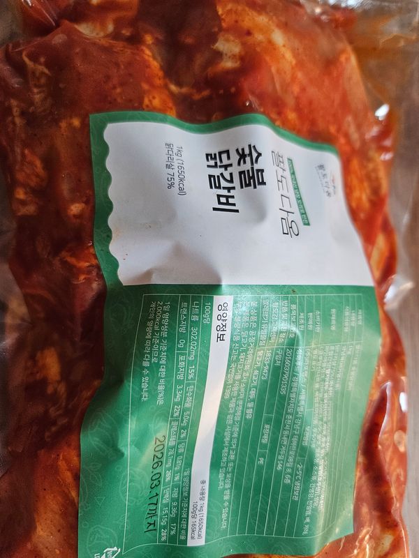 닭갈비는 여기꺼만 먹어요. 달군후라이팬에 닭갈비 펴서 넣고 약한불에 뚜껑닫아서 서서히 익혀먹어요. 야채는 따로 넣지않고 쌈사서 먹었네요. 약간 매콤한맛에 맛있게 잘 먹었어요.기름도 많이 나오지 않어서 느끼한맛도 없어요. 두팩으로 어른세명이서 배부르게 먹었어요.