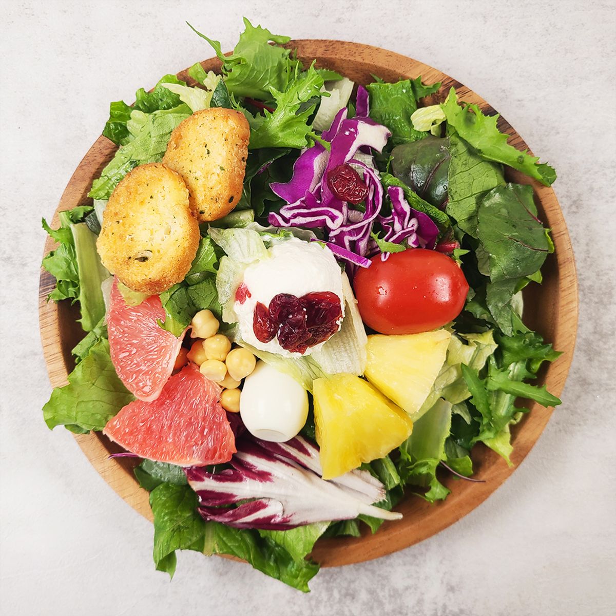 자몽, 파인애플 열매, 상추, 방울토마토, 치즈, 이탈리안 믹스 소스 등으로 구성되어 있습니다. 채소로 지칠 때 쯤, 상큼한 과일을 드셔보세요!