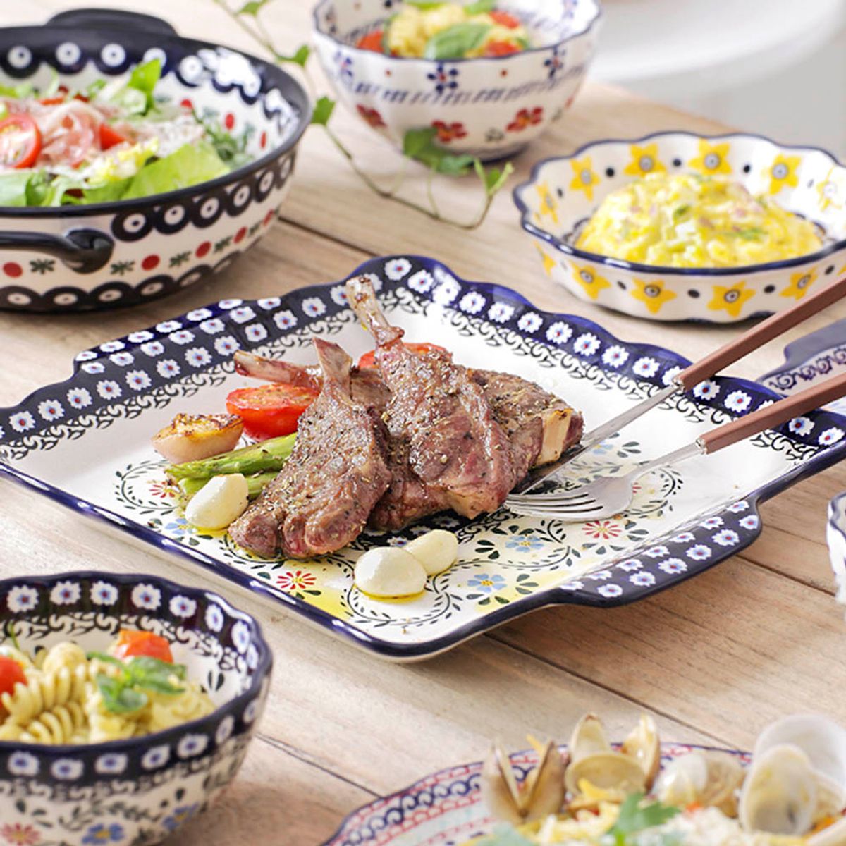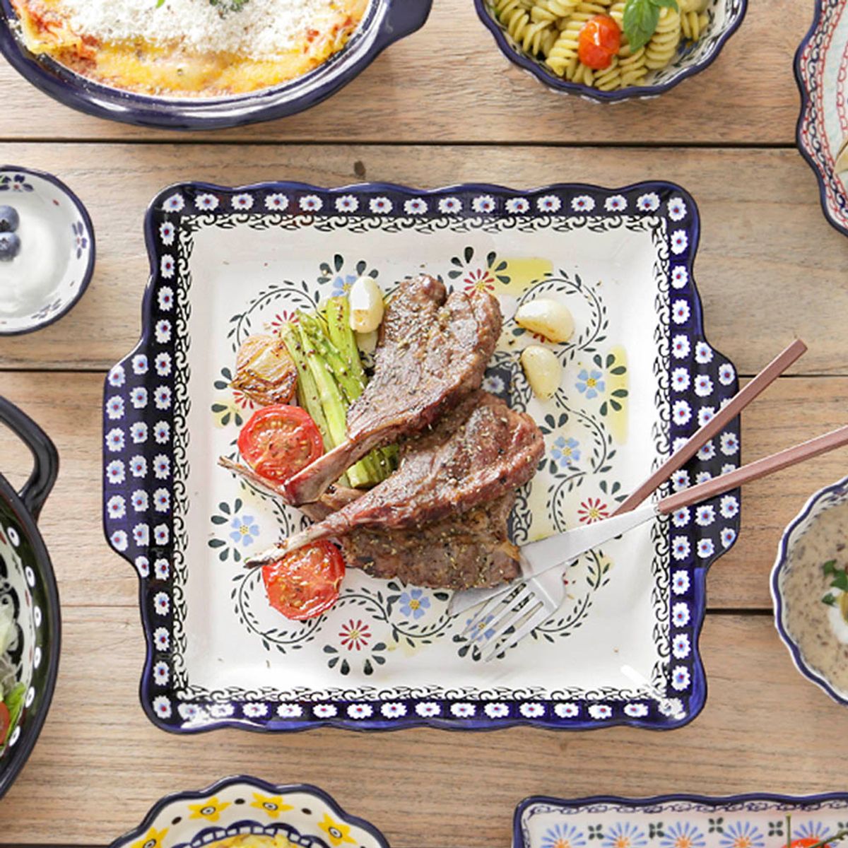 프라카 사각 스페셜 플레이트 폴란드풍 도자기 그릇