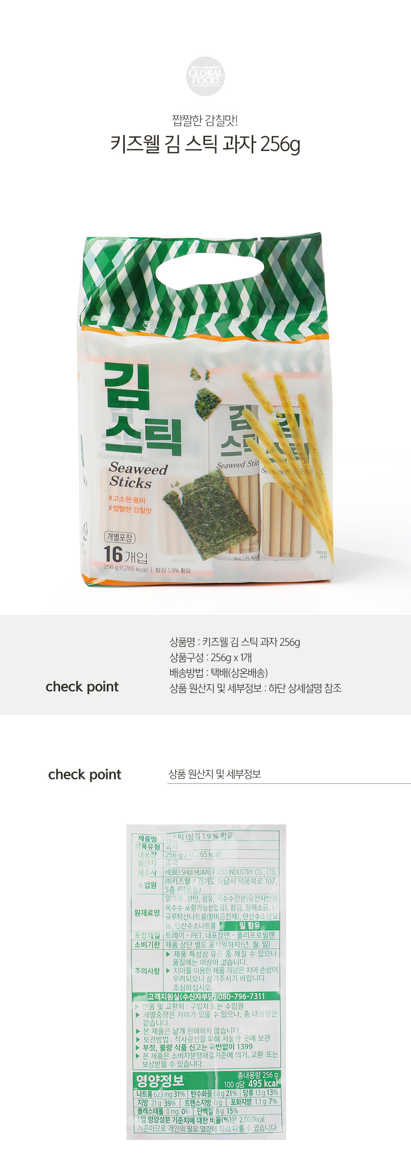 키즈웰 김 스틱 과자 256g / 노브랜드