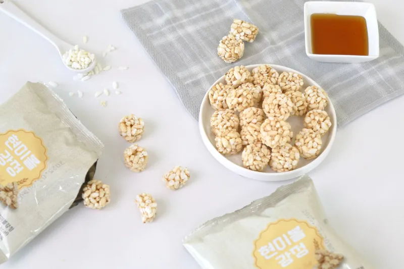 100% 국내산 현미에 달콤한 조청을 묻혀 동글동글 굴려낸 현미볼 강정은 건강한 원료로 만들어 안심하고 드실 수 있어요. 맛과 건강까지 챙긴 일석이조 강정이랍니다!