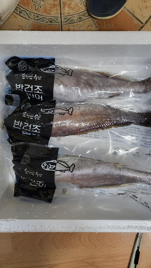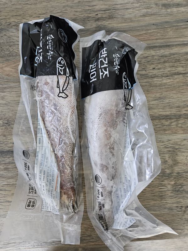 생선 크기 좋쿠요 미린내 없구요 딱 반건조이구욪 하나씩 개별포장 이라 좋아요 근데 간이 전혀 안 되어 있어서 해동하고 소금을 해야 되는건만 아쉬워요